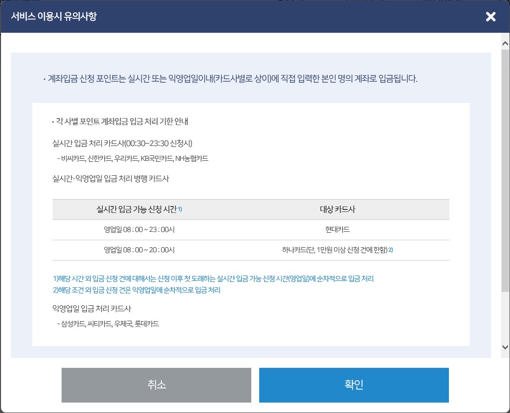 서비스 이용 시 유의사항을 한 번 읽어본 후 확인