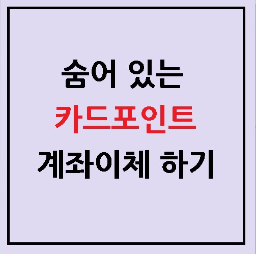 그래서 오늘은 손쉽게 숨어있는 카드포인트를 조회해서 계좌이체까지 하는 법을 안내드리려고 해요.