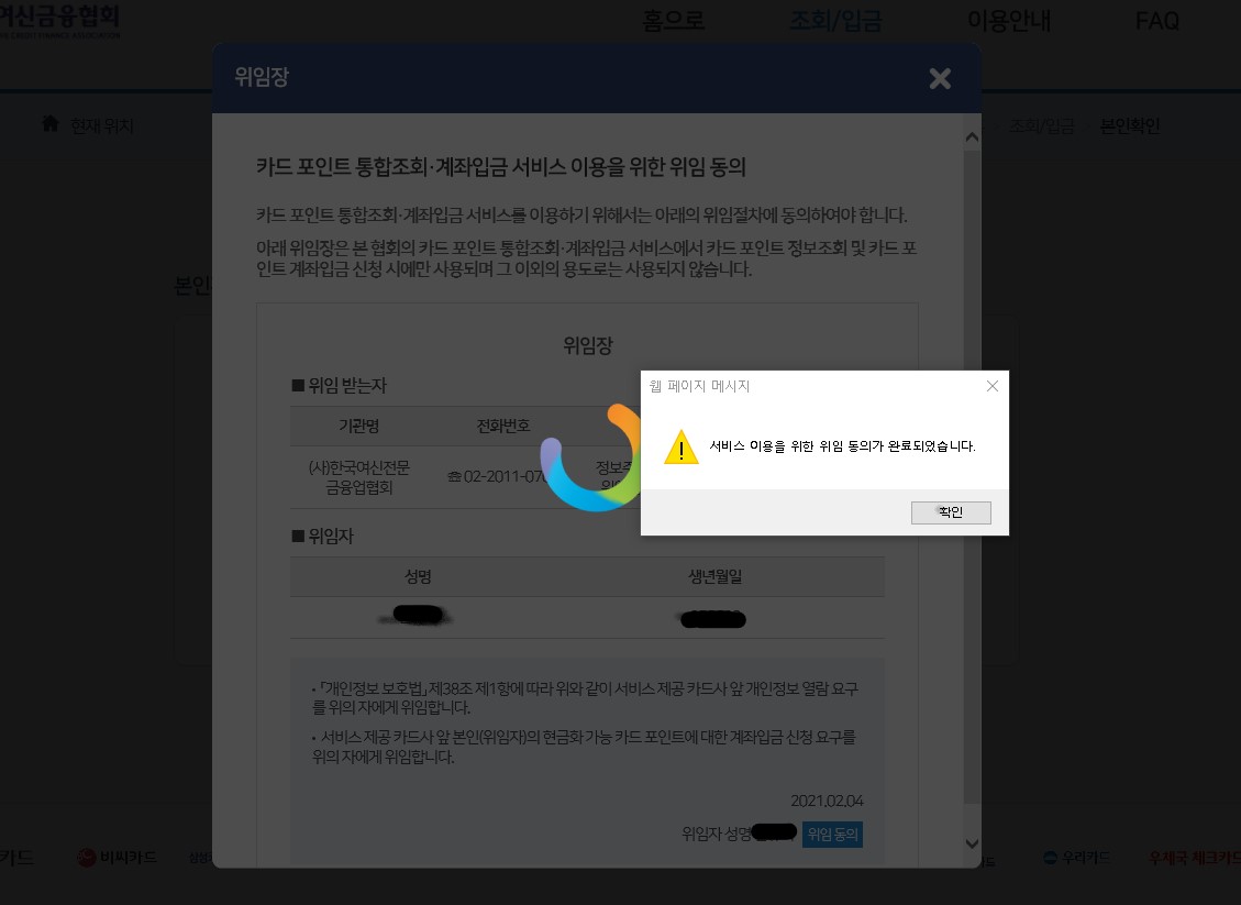 본인 인증 후에는 위임장 팝업이 뜨는데요.