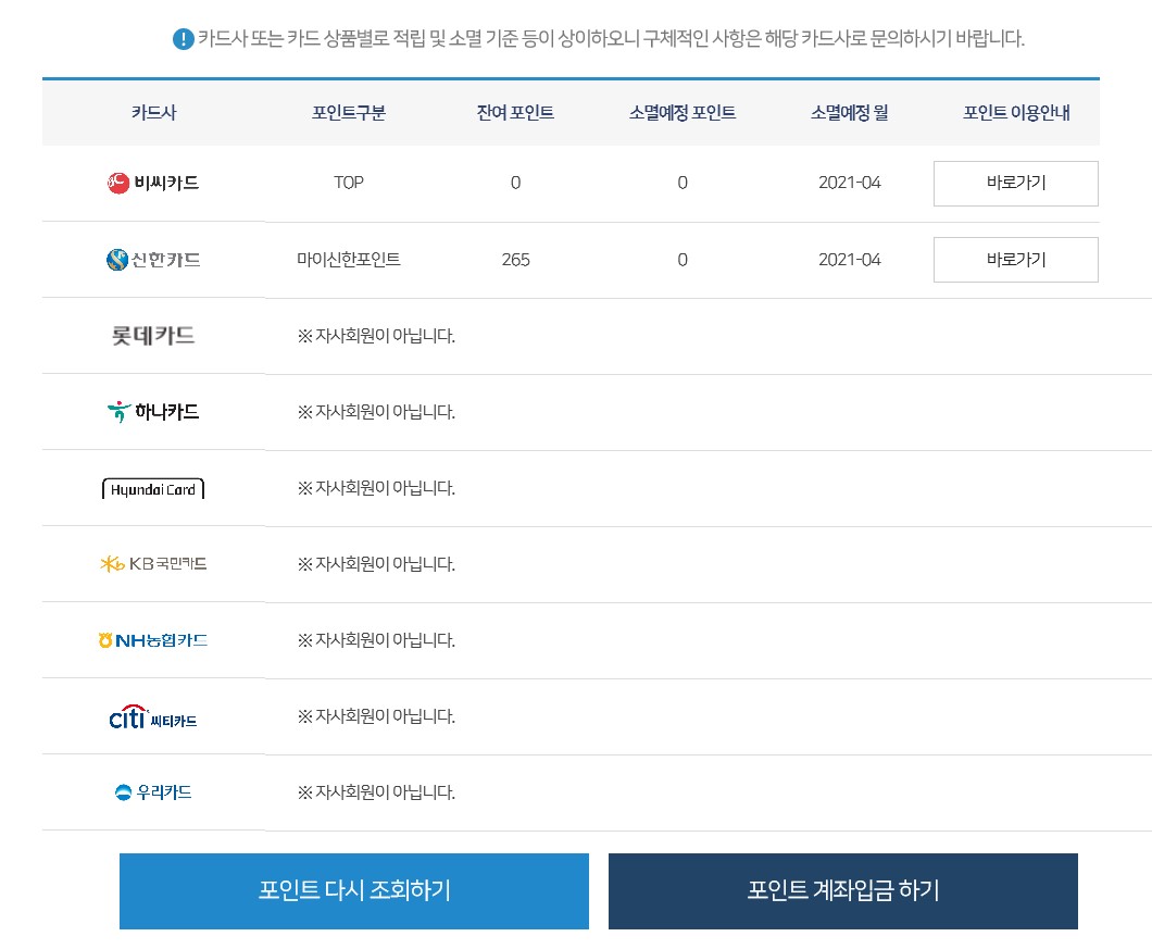 저는 신한카드,비씨카드,삼성카드만 사용중이어서 조회되는 곳이 2군데 밖에 없어요.