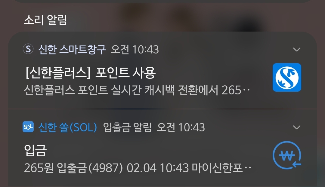 바로 포인트가 계좌로 입금된 것을 확인할 수가 있답니다.