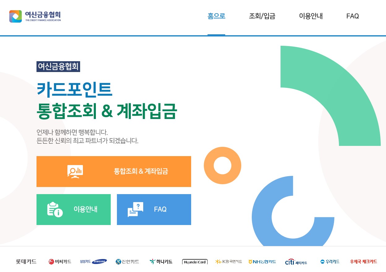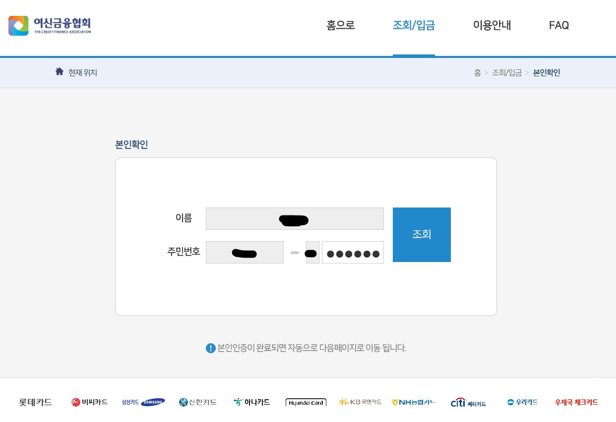 여신금융협회에서 조회가 되는 카드사들의 목록이 나와요.